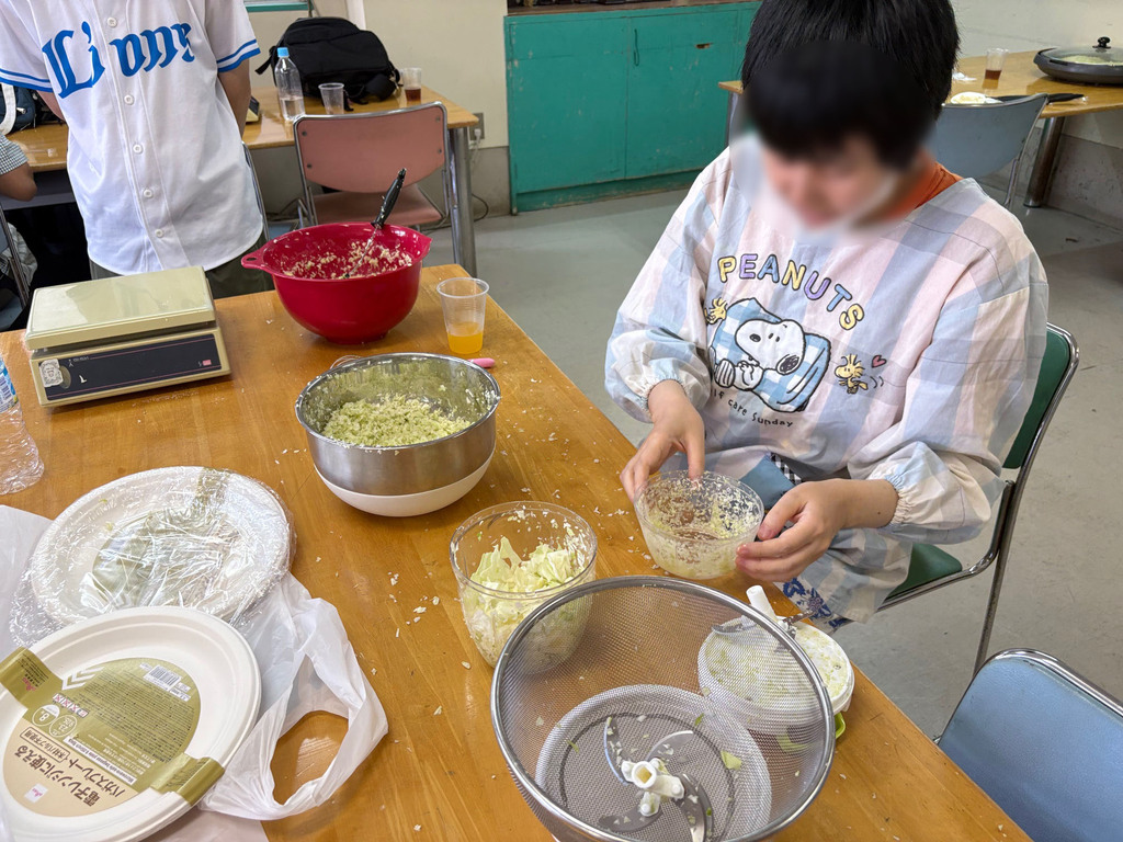 キャベツを細かく切ったりと大忙しでしたが皆さん積極的に参加してくれました。