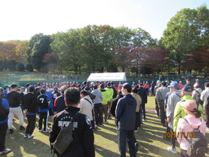 一試合目から試合があって緊張するね!などと話しながら、バス停からグラウンドまでの道のりは、澄んだ空気と木々の紅葉が始まってとても気持ちよかったです。