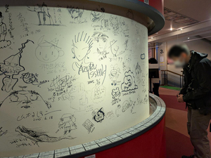受付の柱 作家さんのサインがずらり