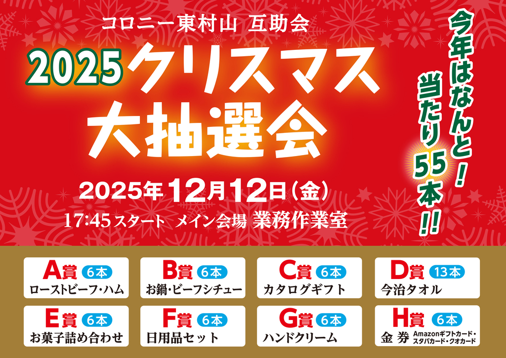 12月12日(金)、互助会主催による「クリスマス大抽選会」が盛大に開催されました。