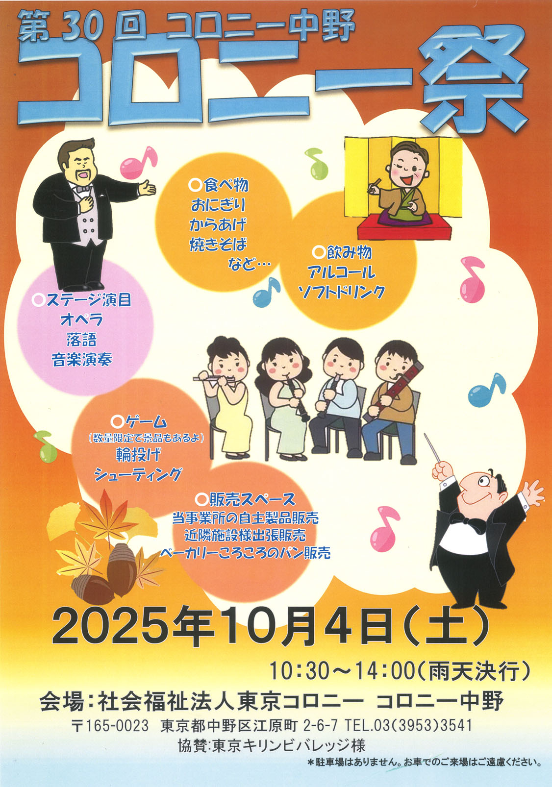 食べ物・飲み物・ステージ演目・ゲーム・販売スペースで、