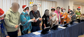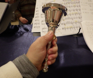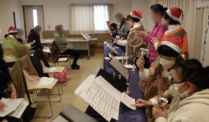 『ジングルベル』『もろびとこぞりて』『きよしこの夜』はハンドベルの演奏に合わせて歌い、『主よ ひとの望みのよろこびよ』などいくつものクリスマスソングの演奏とハンドベルの体験をさせていただきました。