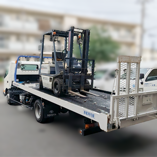 フォークリフトはウインチで静かに引っ張られながらトラックへと積み込まれていきました。
