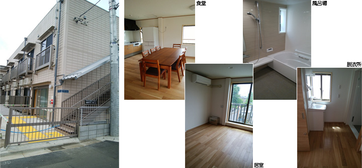 東村山市にある当法人のトーコロ青葉ワークセンターとコロニー東村山のちょうど間にある古い木工工場をグループホーム用に改修して開設しました。両方の事業所に徒歩5分で通えます。また、一階はバリアフリーなスロープで入ることができ、大きめなトイレや風呂が設置されています。