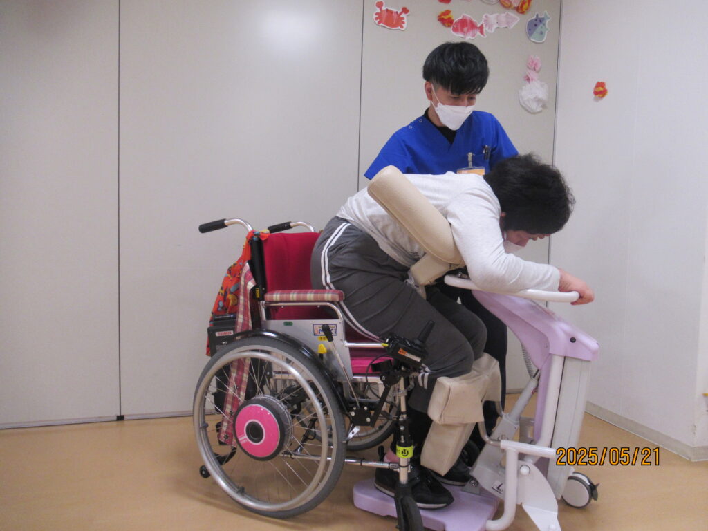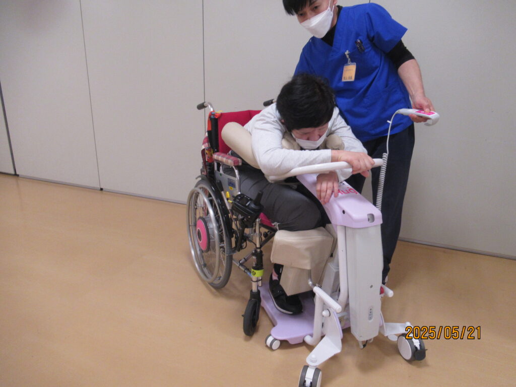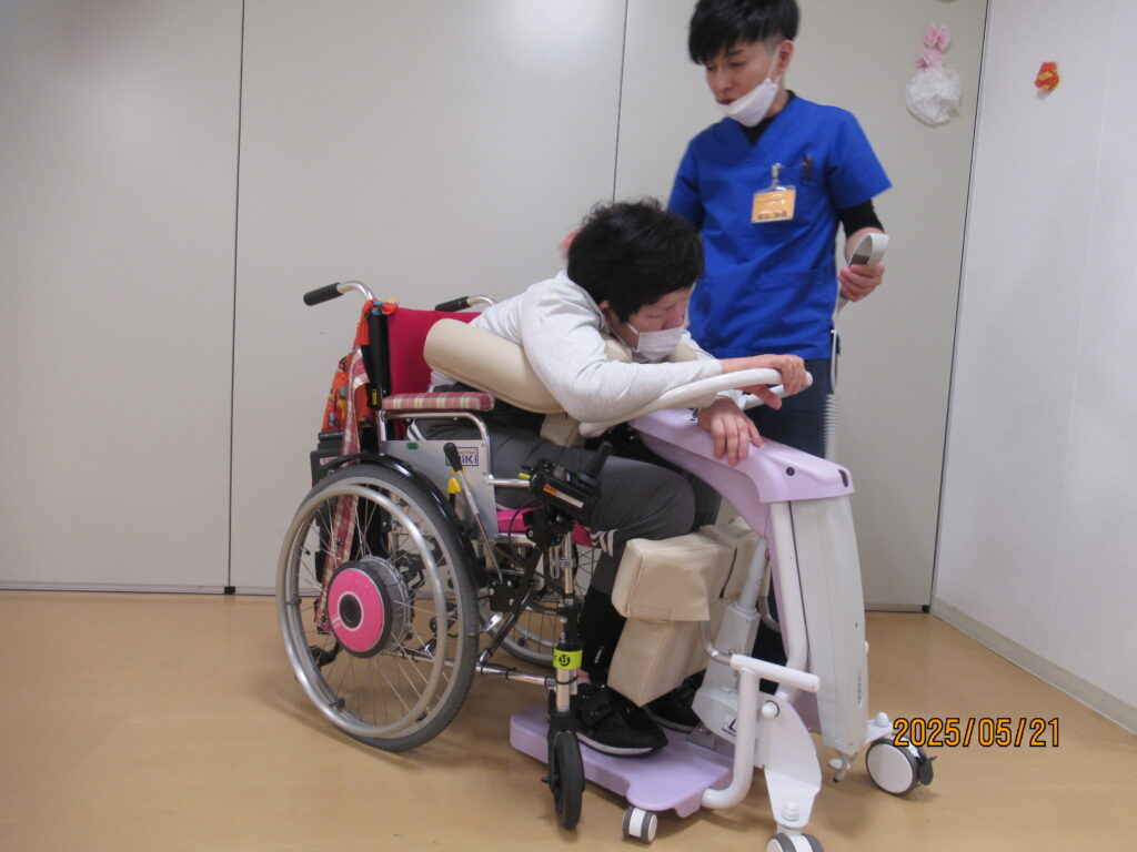 現在まで各利用者の身体状態の評価を進めておりますが、福祉用具が適応となる方もいらっしゃいます。今回は数ある福祉用具の中から、当事業所で導入したHUG(ハグ)という機器をご紹介させて頂きます。